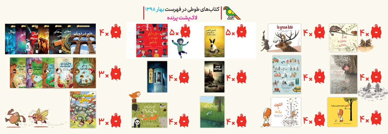 طوطی، ﻛﺘﺎب کودک و ﻧﻮﺟﻮان اﻧﺘﺸﺎرات فاطمی، از ﺳﺎل ۱۳۹۴ ﻓﻌﺎﻟﻴﺖ ﺧﻮد را ﺑﺎ ﺗﻤﺮﻛﺰ ﺑﺮ ﻛﺘﺎبﻫﺎى ﺗﺼﻮﻳﺮى ﺑﺮاى ﻛﻮدﻛﺎن آﻏﺎز ﻛﺮده اﺳﺖ. دربارهی طوطی…